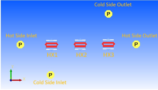 - Drag and drop three heat exchangers as we are modeling three pass heat exchangers