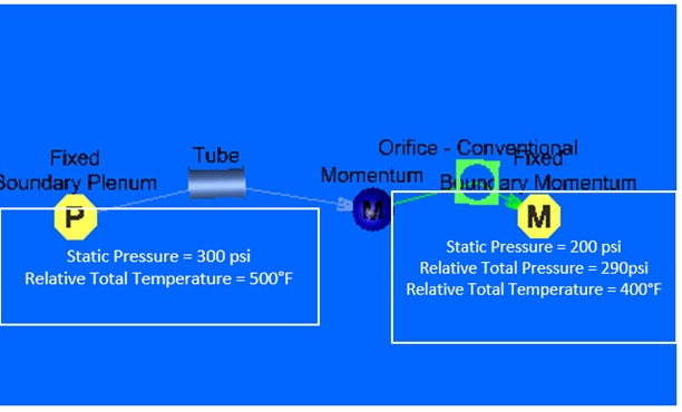 - Connect stationary tube element between boundary plenum (left) and the center momentum chamber, and conventional orifice element between center momentum chamber and boundary momentum (right) chamber.