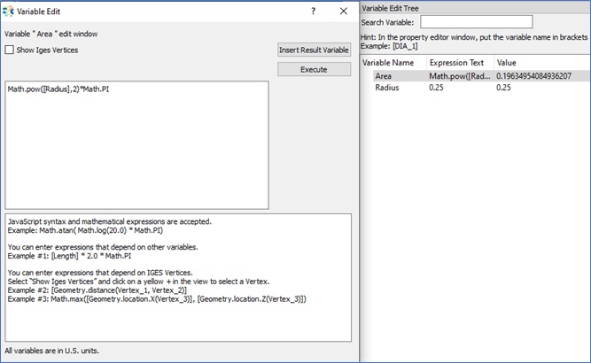 “Math.pow([Radius],2) *Math.PI” in secondary pop-up window as shown in