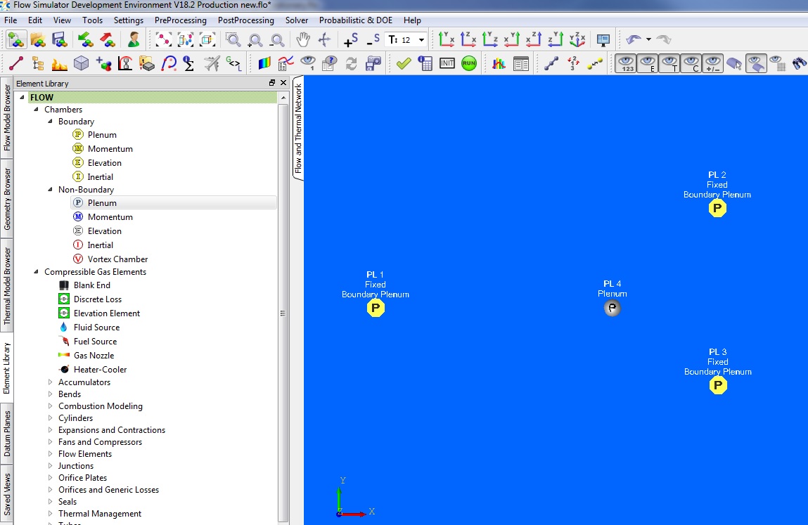 - Drag and drop three boundary plenums and one non-boundary plenum from the Object Tree to the Graphical Workspace. See figure 1.02