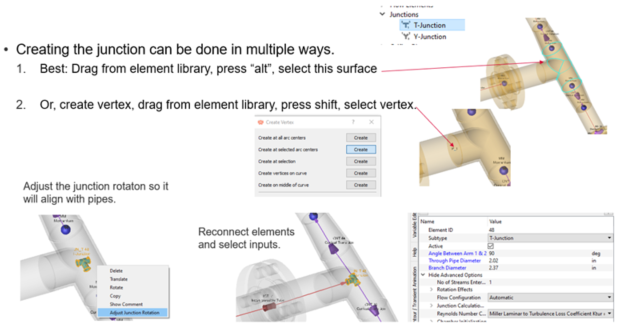 - Click and drag incompressible T-Junction elements to the pipe connection locations
