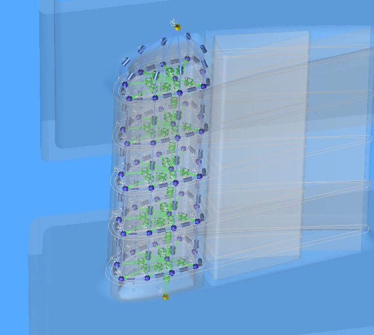 - Connect the momentum chambers between the baffle and the LE walls with Standard tubes. The direction of these tubes is hard to predict, but the Flow Simulator solver is able to reverse the flow direction if needed. You can create the tubes in the direction shown in Figure 1.04 or you can use your own directions.