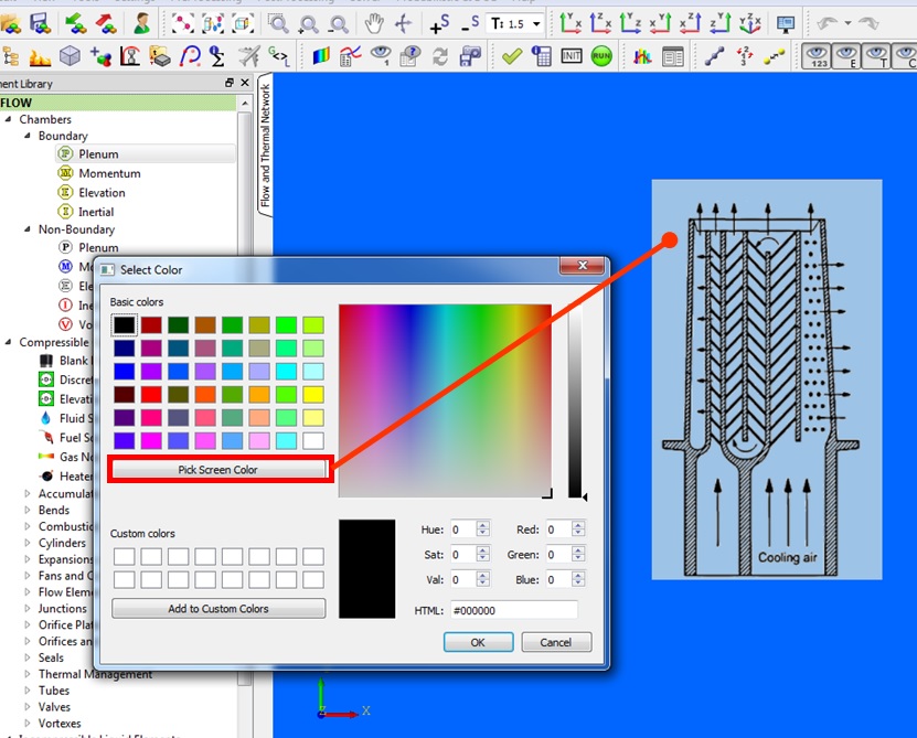 - Exit the user settings and right click on the background and select change background color. In the window that pops up, select Pick Screen Color and click on the background of the blade image. Click OK. This should turn the background of flow simulator the same as that of the image.
