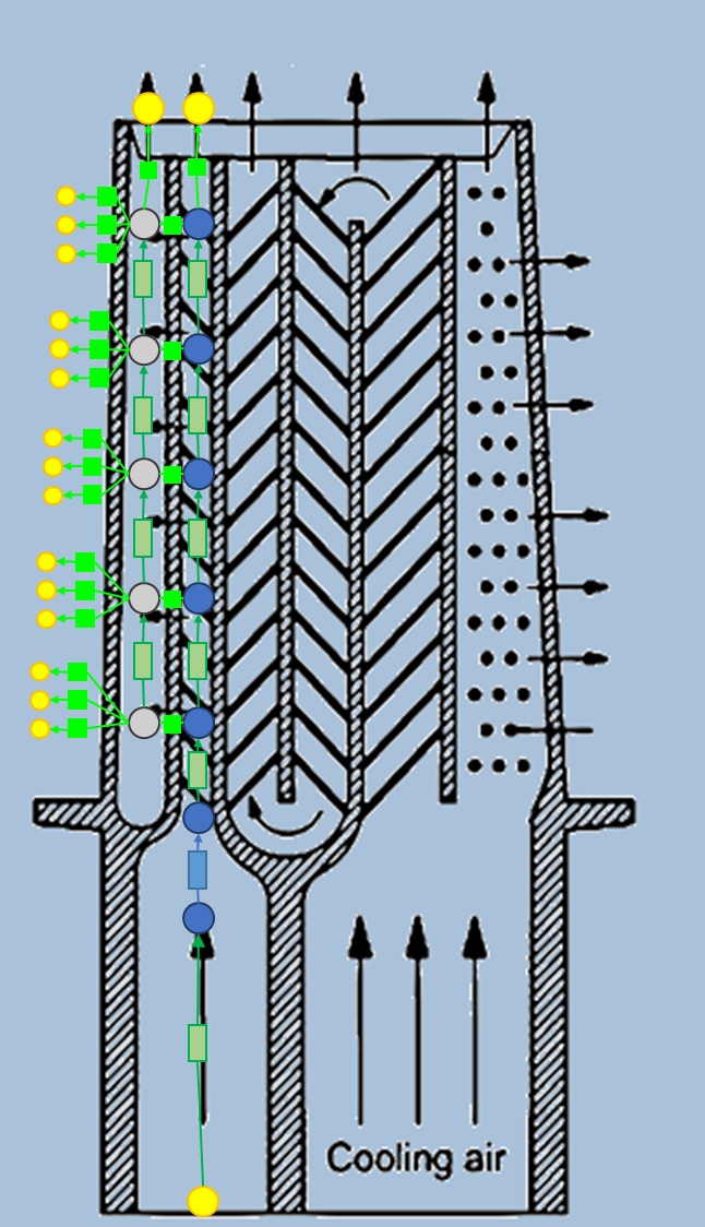 - We will be creating a model of the cooling circuit of the Leading Edge (LE) of a High-Pressure Turbine Blade (highlighted red in figure 1.01).