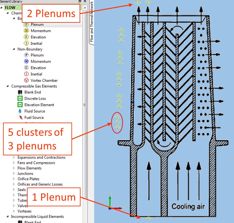 - Connect the plenums to the cluster of boundary plenums using Conventional Orifice elements to model the film holes exiting the blade near the Leading Edge as shown in figure 1.12