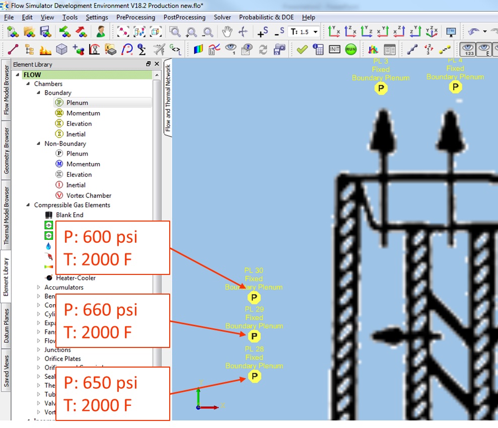- Set the two Plenums at the tip to pressure of 650 Psi and temperature of 2000 F