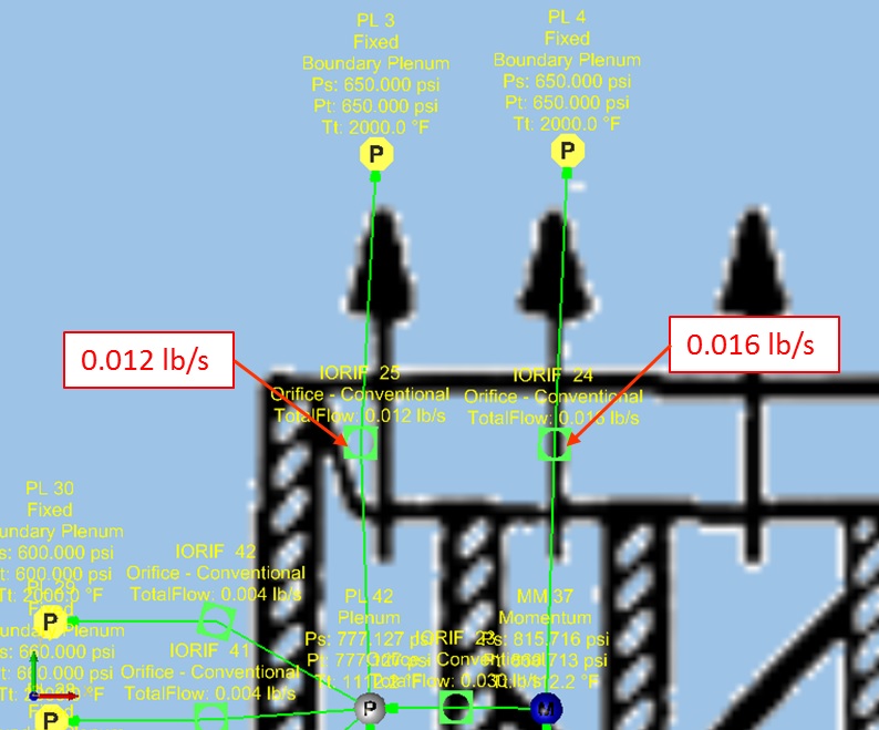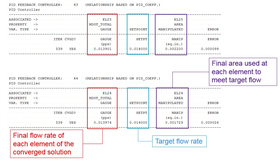 controller elements to the two flow elements representing the tip cap holes. The PID
