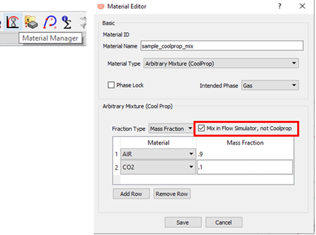 - Coolprop has difficulty with some fluid mixture combinations. A new option mixes Coolprop species using Flow Simulator mixture rules instead of having Coolprop mix internally. Only use this option if Coolprop fails during its own mixing. The properties of the individual species are retrieved from Coolprop. Flow Simulator uses these properties to calculate the mixture properties.