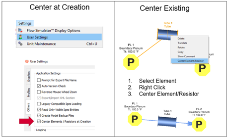 - The flow element symbol can be automatically centered between its