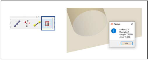 - You can select a geometry edge to display radius, diameter, edge length,