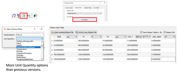 - The mission data table now has all the unit options available in Flow Simulator. This allows input of data like HTC in other unit sets.