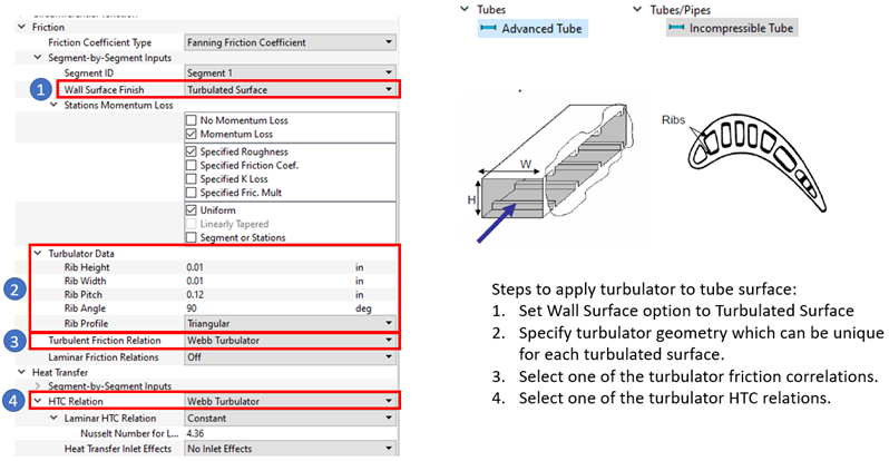 - Webb Turbulator – Circular duct, square rib profile, 45 to 90 degree rib angle. Ref.: Webb, R. L., Eckert, E. R. G., and Goldstein, R. J. "Heat Transfer and Friction in Tubes with Repeated-Rib Roughness", Int. Journal of Heat and Mass Transfer, 14 (1971).