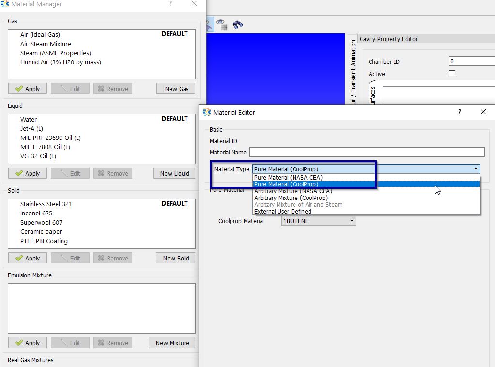 New Material database has been introduced (CoolProp). Users will have both NASA CEA & CoolProp for selection to create user defined materials. More reference to CoolProp are available at http://www.coolprop.org/