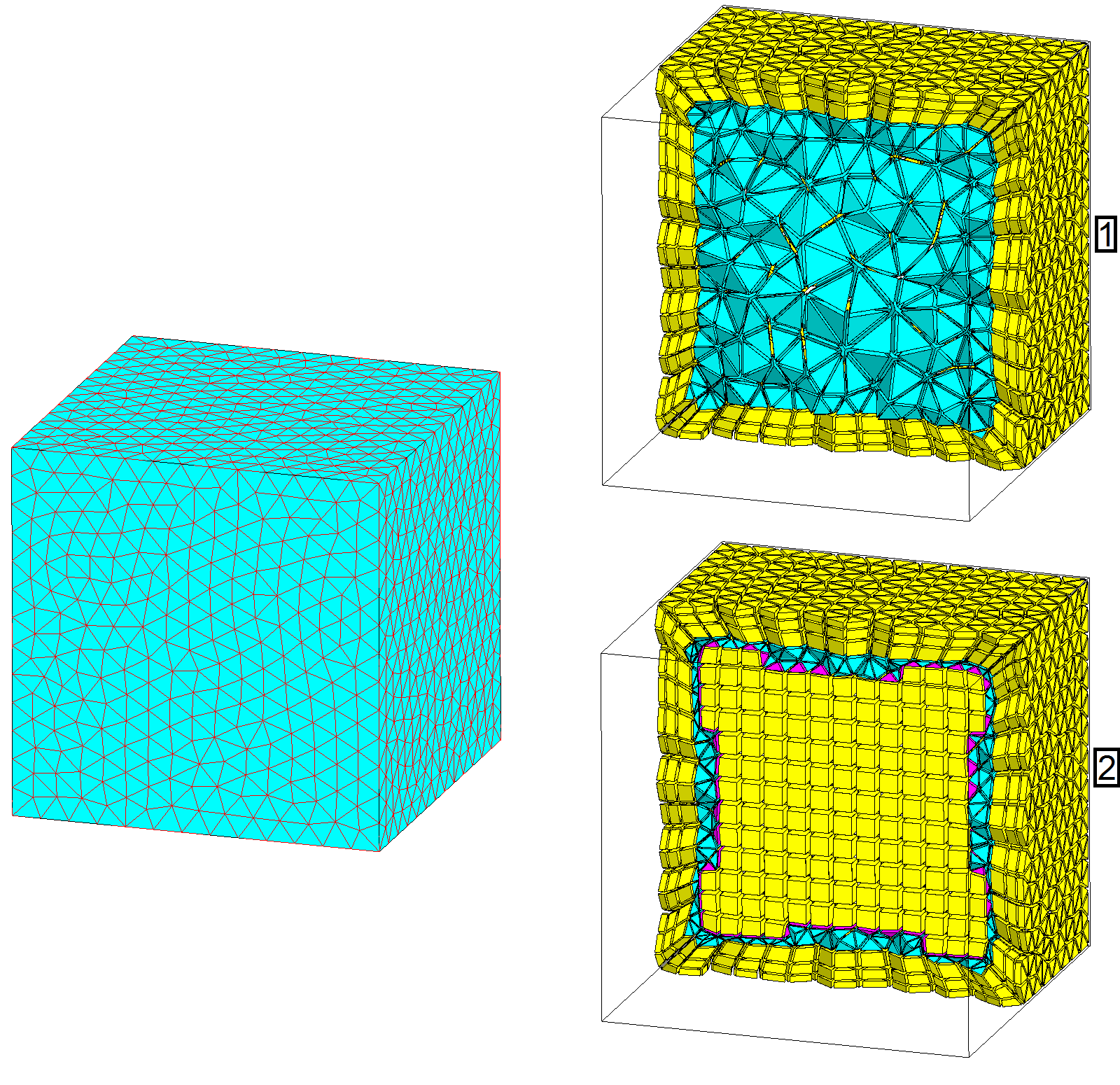 It allows to mesh the boundary of volumes in layers with extruded elements (prisms, hexahedra) and relax the mesh in the remaining volume.