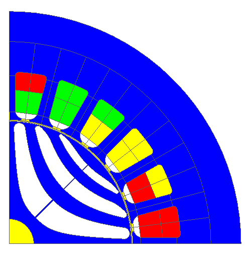 Let's consider the modeling of the following electrical machine represented by only one-quarter of the full device.
