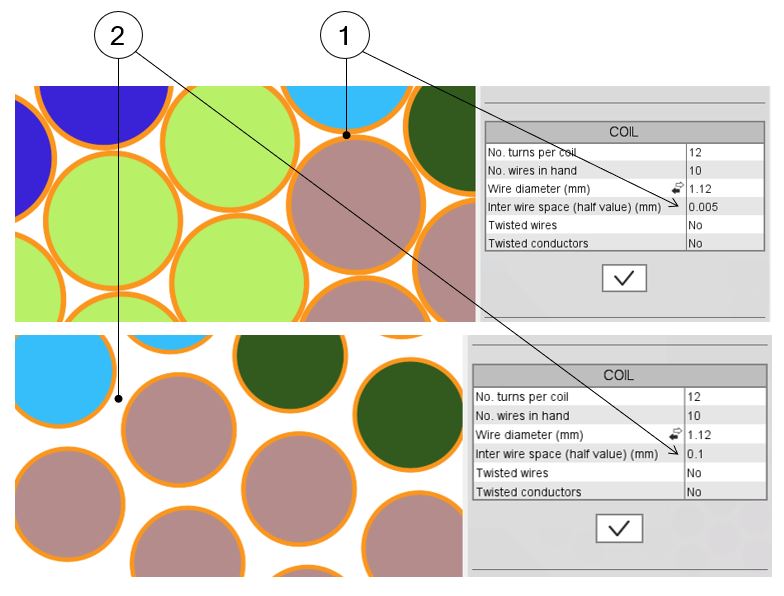 inside the Flux2D environment. When there is no wire insulation, Inter-wire space represents the minimum distance between the bar wires(2) |