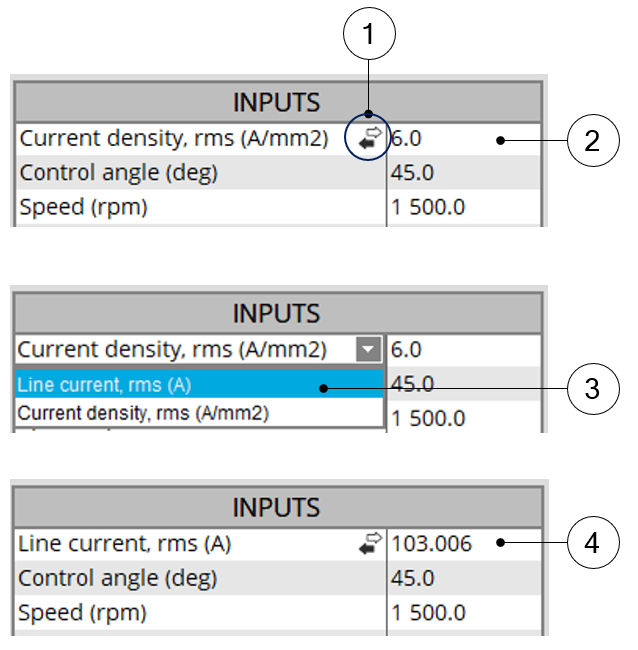 | 2 | First choice = Current density (A/mm²). |