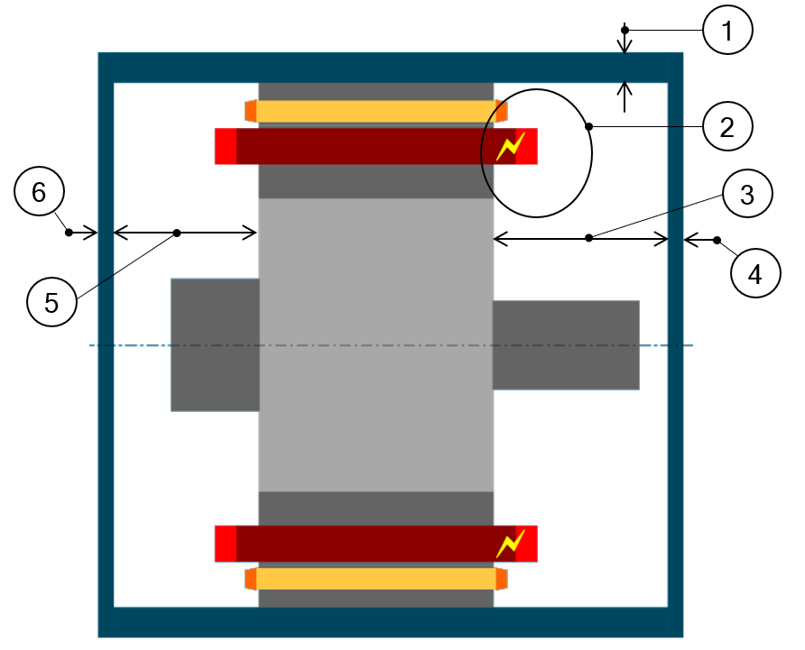| 1 | Radial view of the motor, including the housing topology and dimensions. |