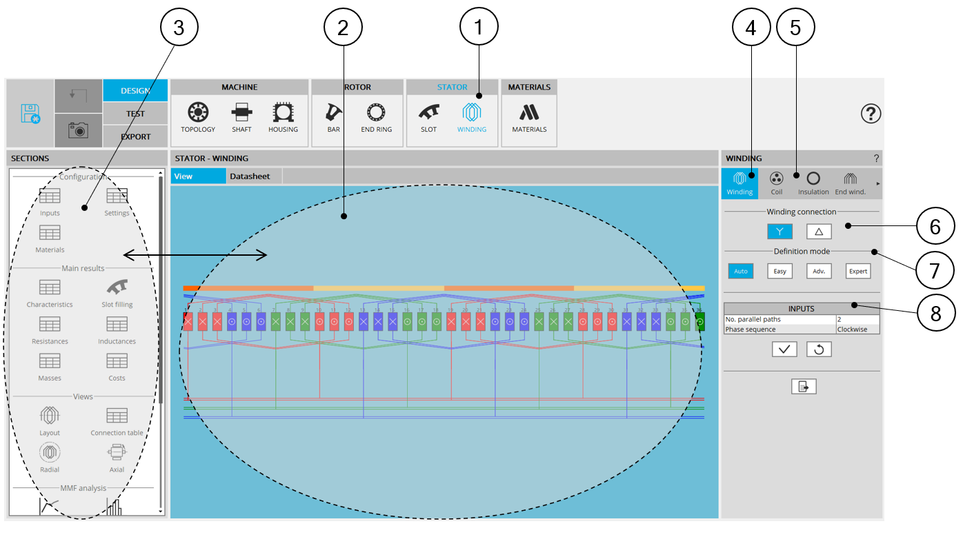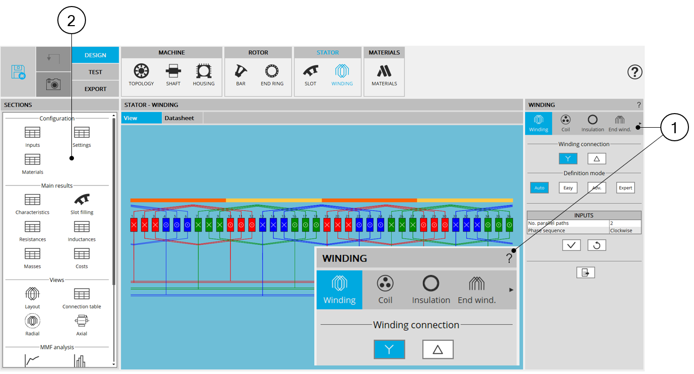 Choice of the winding connection: Y (Wye) or Δ (Delta). |