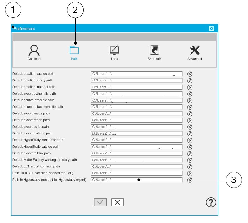 | Path to HyperStudy – Needed for HyperStudy export – It must be defined in the user preferences (Supervisor of FluxMotor) |