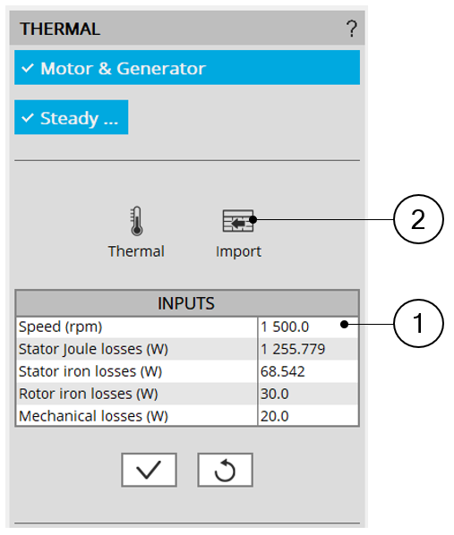 For some tests, some values are not defined (like for instance the rotor iron losses). In that case, the corresponding values are set to 0 in the thermal characterization input table.