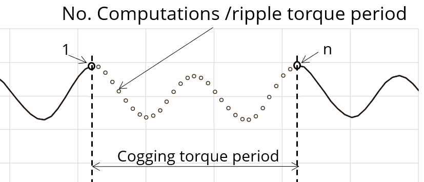 The user input “ No. comp. / ripple period ” (Number of computations per ripple torque period) influences the accuracy of results (computation of the peak-peak ripple torque) and the computation time.