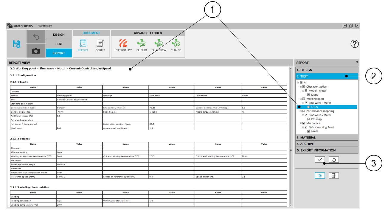 | 5 | It is possible to attach the report (HTML or PDF file) to the motor in the “Motor Catalog” |