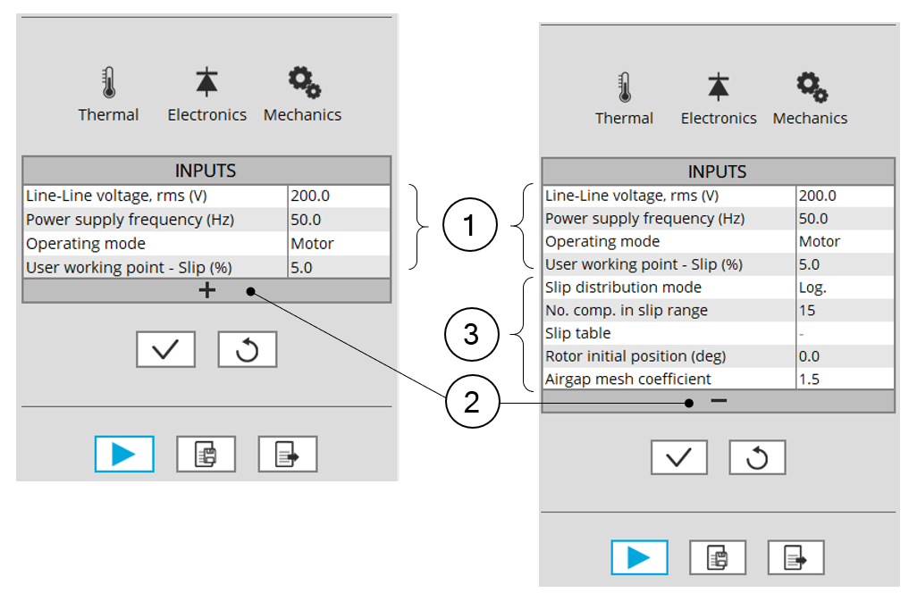 | 1 | Button to define winding and squirrel cage temperatures to be considered in the test. |