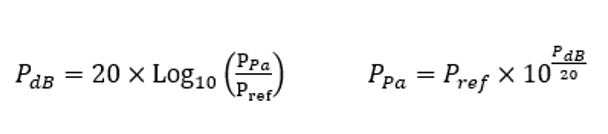 Considering this referent value P ref , one can compute any Maxwell pressure value P Pa (expressed in Pa) from the ones expressed in Decibel P dB .