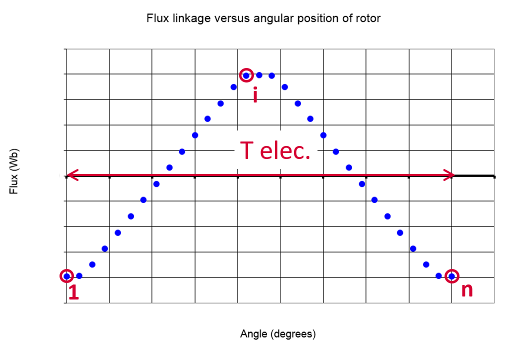 To get the Back-EMF versus time, the flux through each phase of the machine is computed versus rotor angular position.