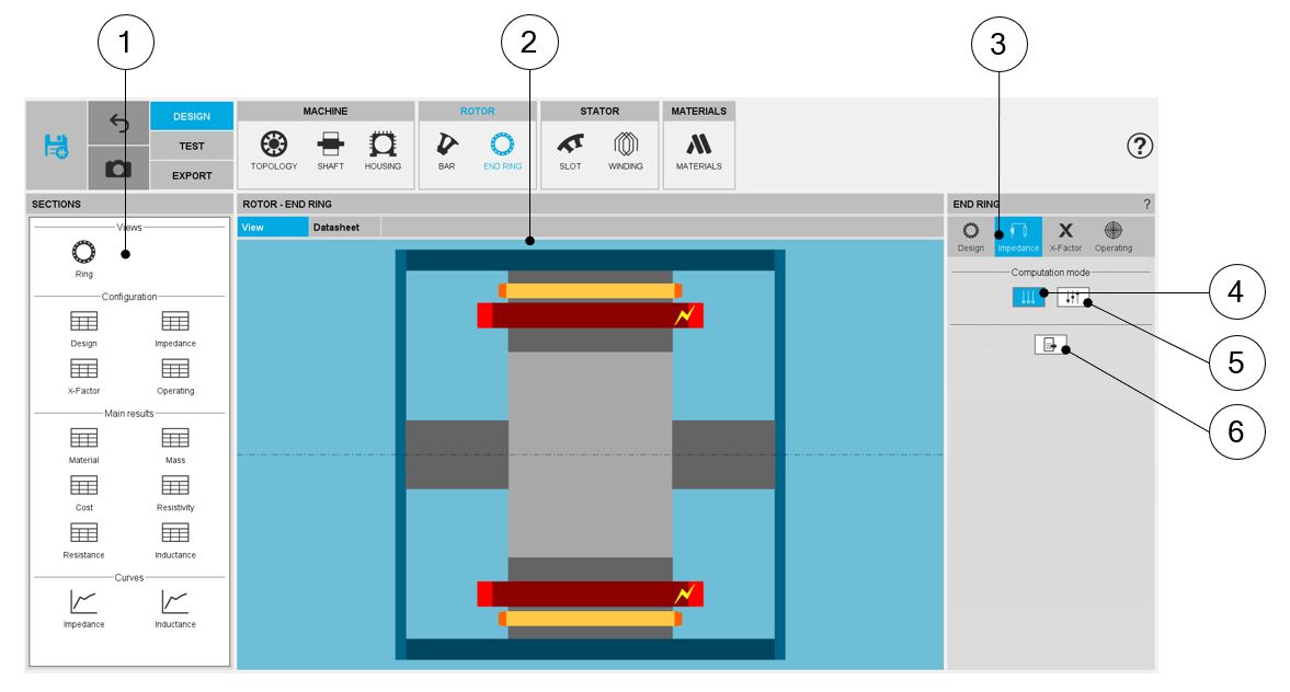 When automatic computation mode is set, inter bar end-ring impedances are computed by internal processes, being a function of the slip (or speed), the temperature at the end ring (at Connection Side and Opposite Connection Side), and the material of the end ring.