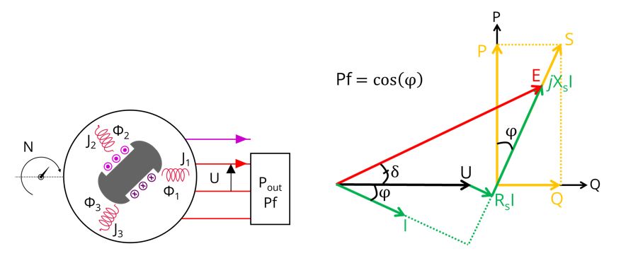 - the output power which can be either the electrical power transmitted to the stator winding if the machine is in generator operation, or the mechanical power exerted on the shaft if the machine is in motor operation. If the generator operation is targeted, the output power can be replaced by the apparent power.
