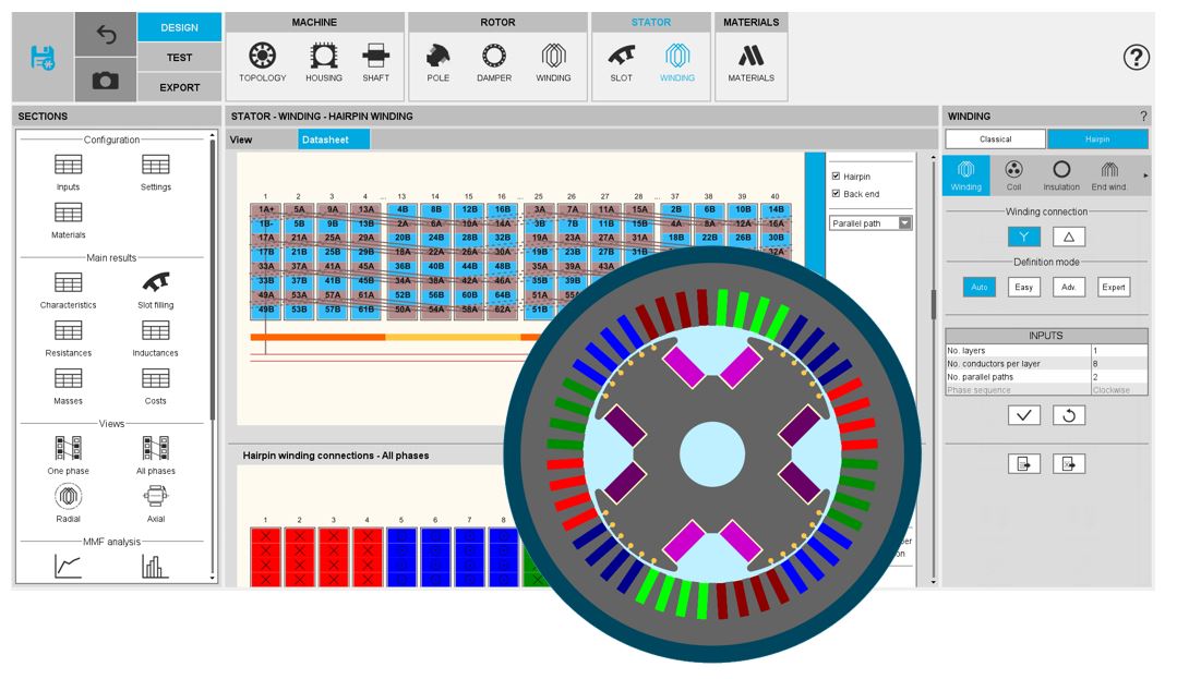 | Motor Factory – DESIGN – Winding area – hairpin technology is available for the wound field synchronous machine |