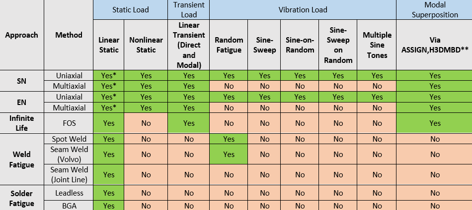 *An additional option to fatigue damage calculation, is the Pseudo damage method. This is supported only for Static SN and Static EN approaches (both uniaxial and multiaxial methods). For more information, refer to Pseudo Damage Method.