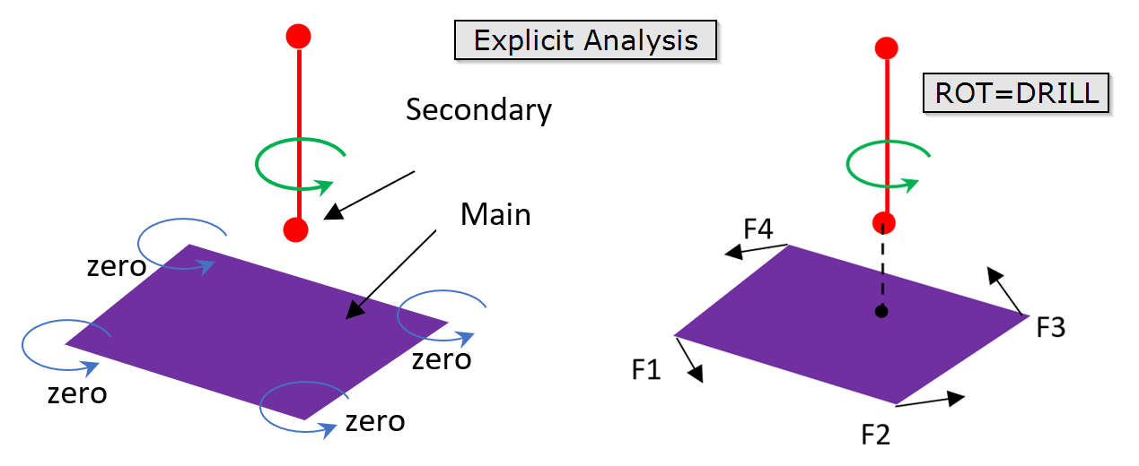 - Applying rotational SPC on nodes which belong to a FREEZE contact should be avoided. Fixing the rotational degrees of freedom will prevent the rotation of these contact nodes even in the case of solid elements.