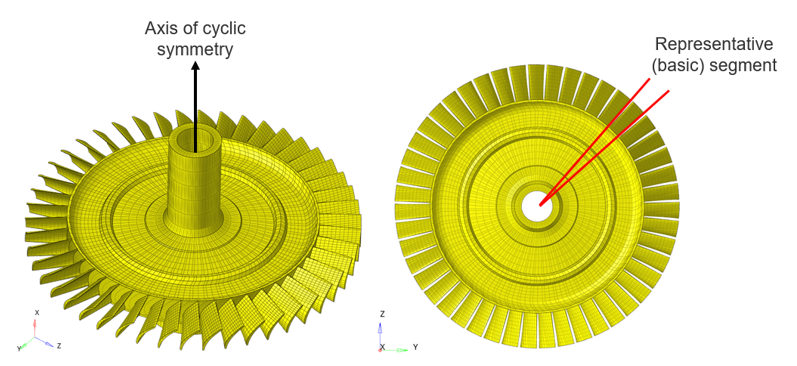 Cyclic symmetry is a type of symmetry in which a representative (or basic) segment, if patterned circularly about an axis of symmetry would result in the full model.