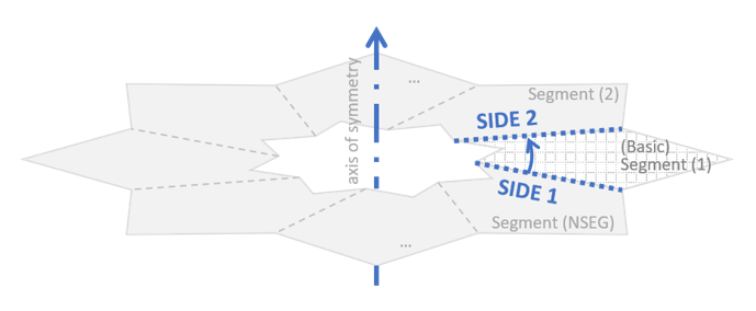 In a cyclic symmetry analysis, the boundaries on either side of the modeled base segment which are to be connected to adjacent segments are defined as SIDE 1 and 2. The direction of the axis of symmetry are determined using the right-hand thumb rule.