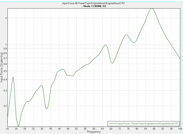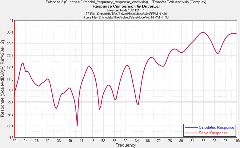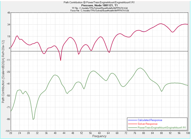 Note: The Calculated Response which is the summation of all the paths (RHS of EQ 1) is plotted against the Response calculated by the Solver as shown in Figure 7. The Calculated Response should match up with Solver Response if all the paths have been considered and the co-ordinate system used for attachment forces output aligns with the co-ordinate system used for TF output.