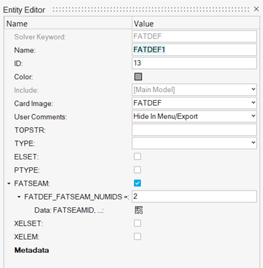 - Optionally, you can choose to create all fatigue solver cards (such as FATPARM, FATDEF, FATEVNT, PFAT etc. that are created in subsequent steps) in a separate include file. For this, you should select the check box Create include file for fatigue solver cards (optional).
