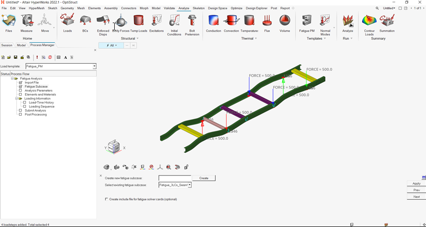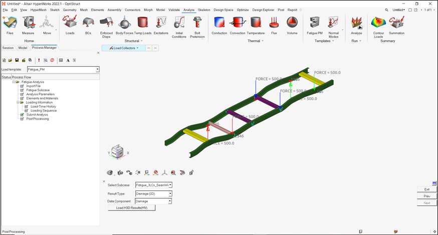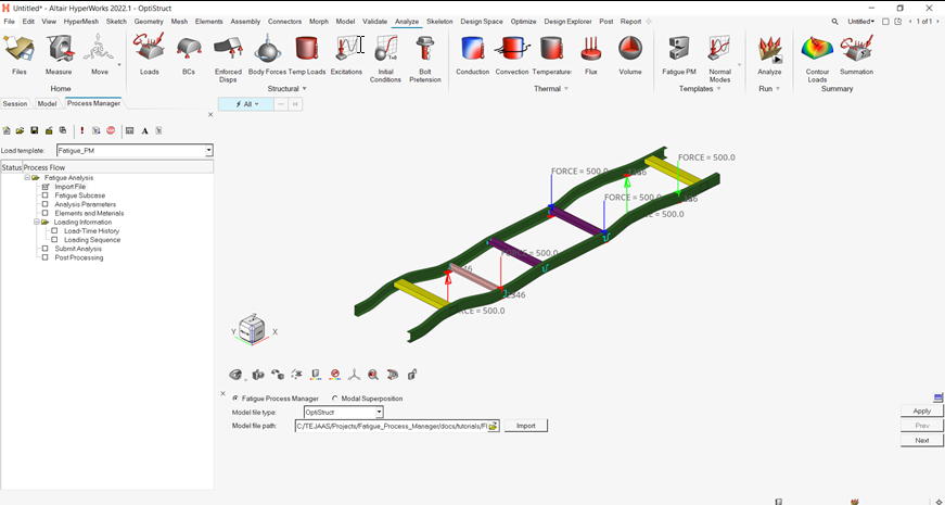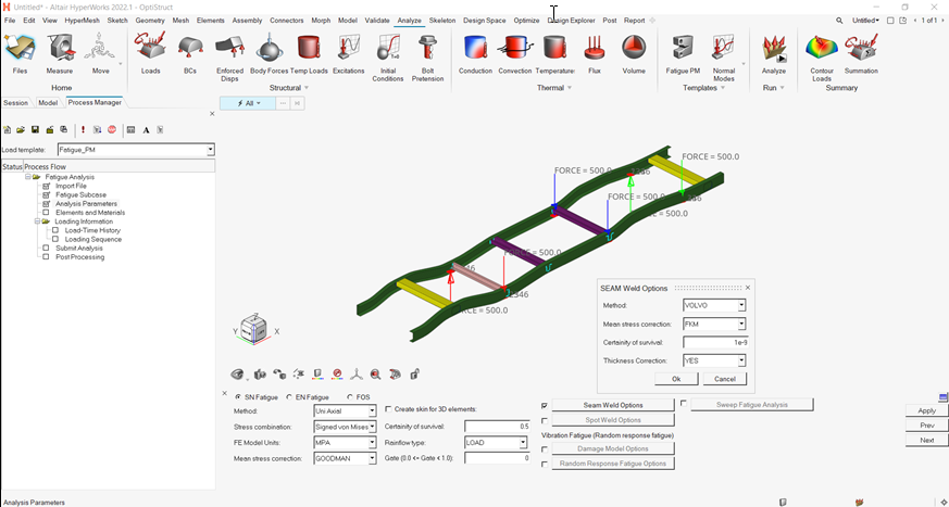 - From the Templates ribbon, select the Analyze menu and select Fatigue PM.