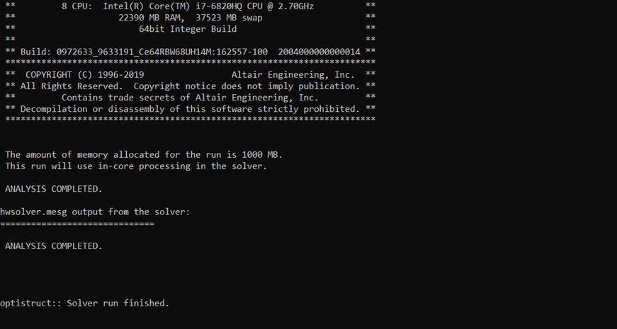 - OptiStruct output file containing specific information on the file set up, the set up of your fatigue problem, compute time information, etc. Review this file for warnings and errors.