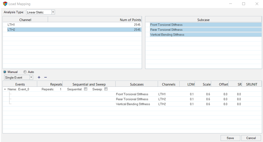Figure 13. Load Mapping to associate load-time history with static subcase