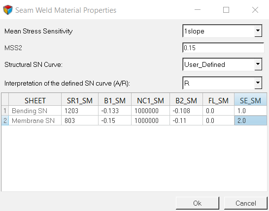 Enter the values for Mean Stress Sensitivity, MSS2, Structural SN Curve along