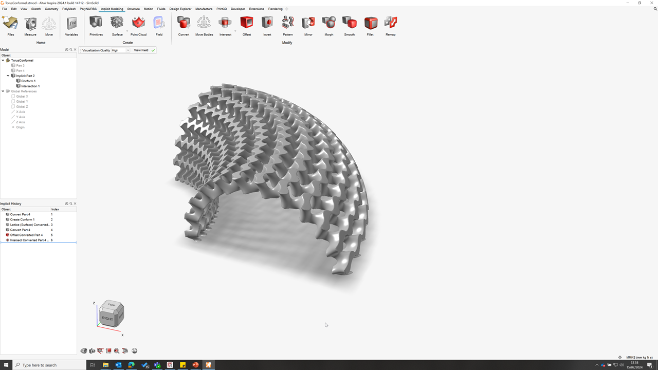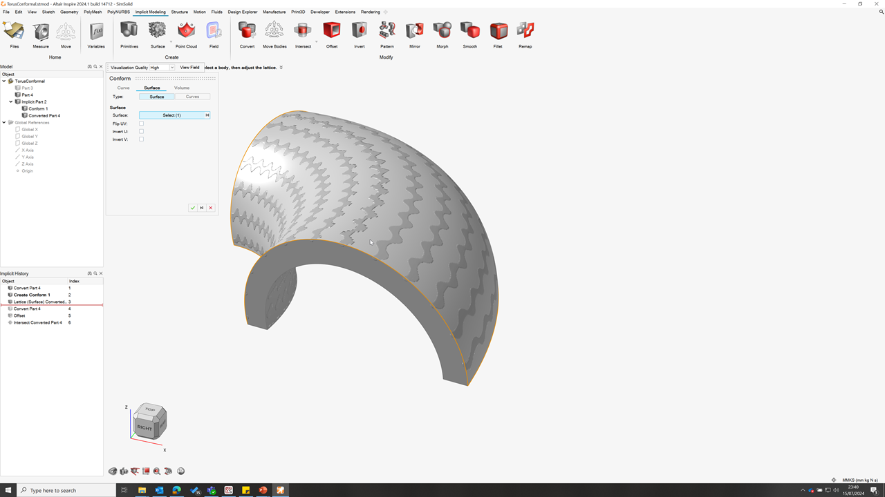 使用“隐式建模”创建的格栅可以选择与用户选择的参数 (BRep) 曲面贴合。