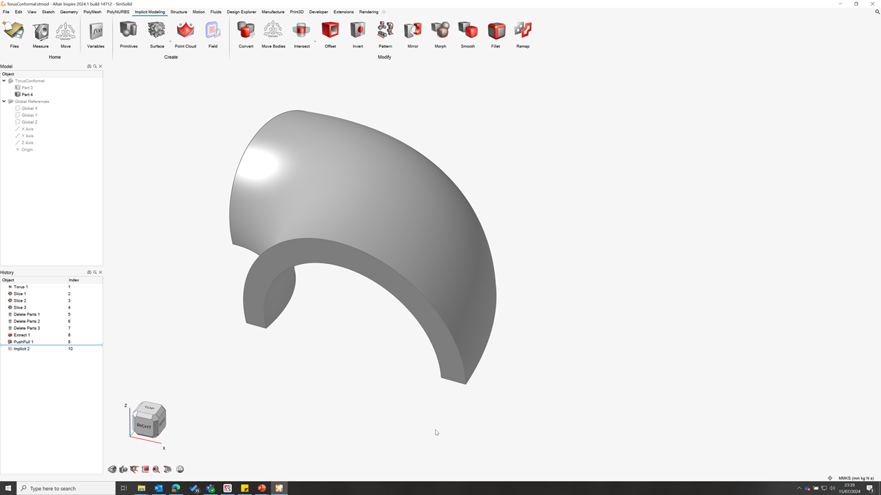 从 BRep 几何体开始,选择要格栅化的模型,然后点击“隐式建模”功能区中的
