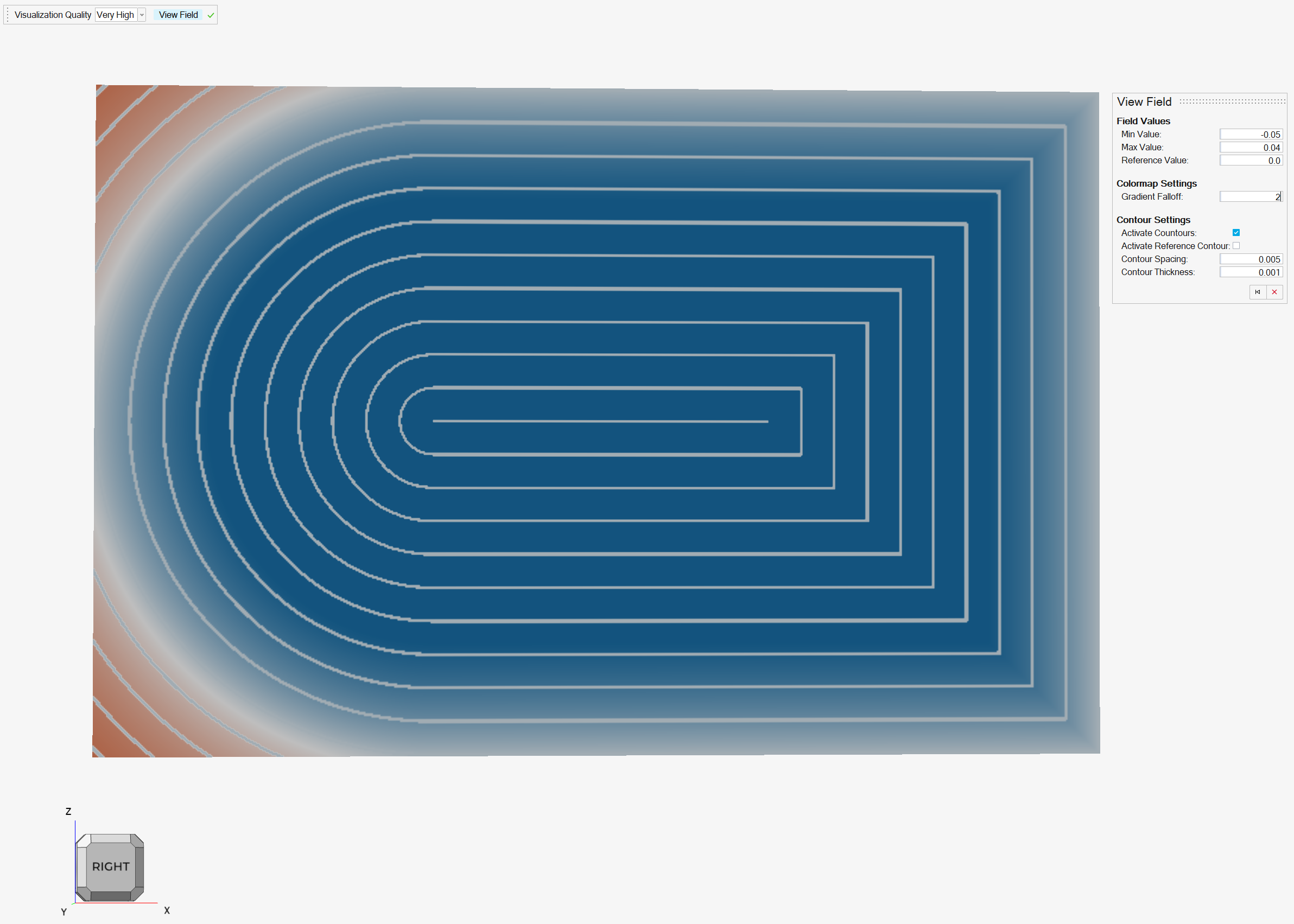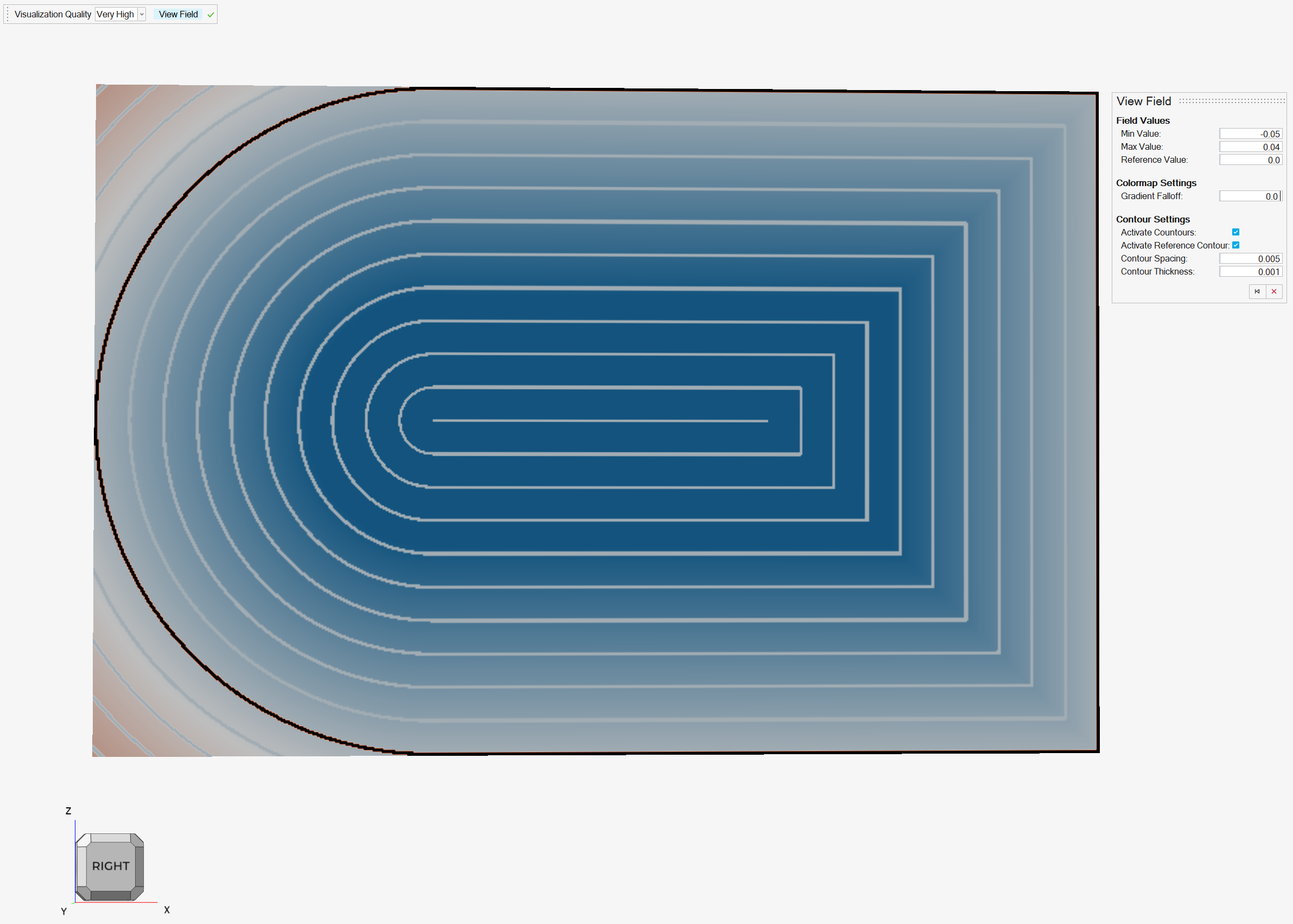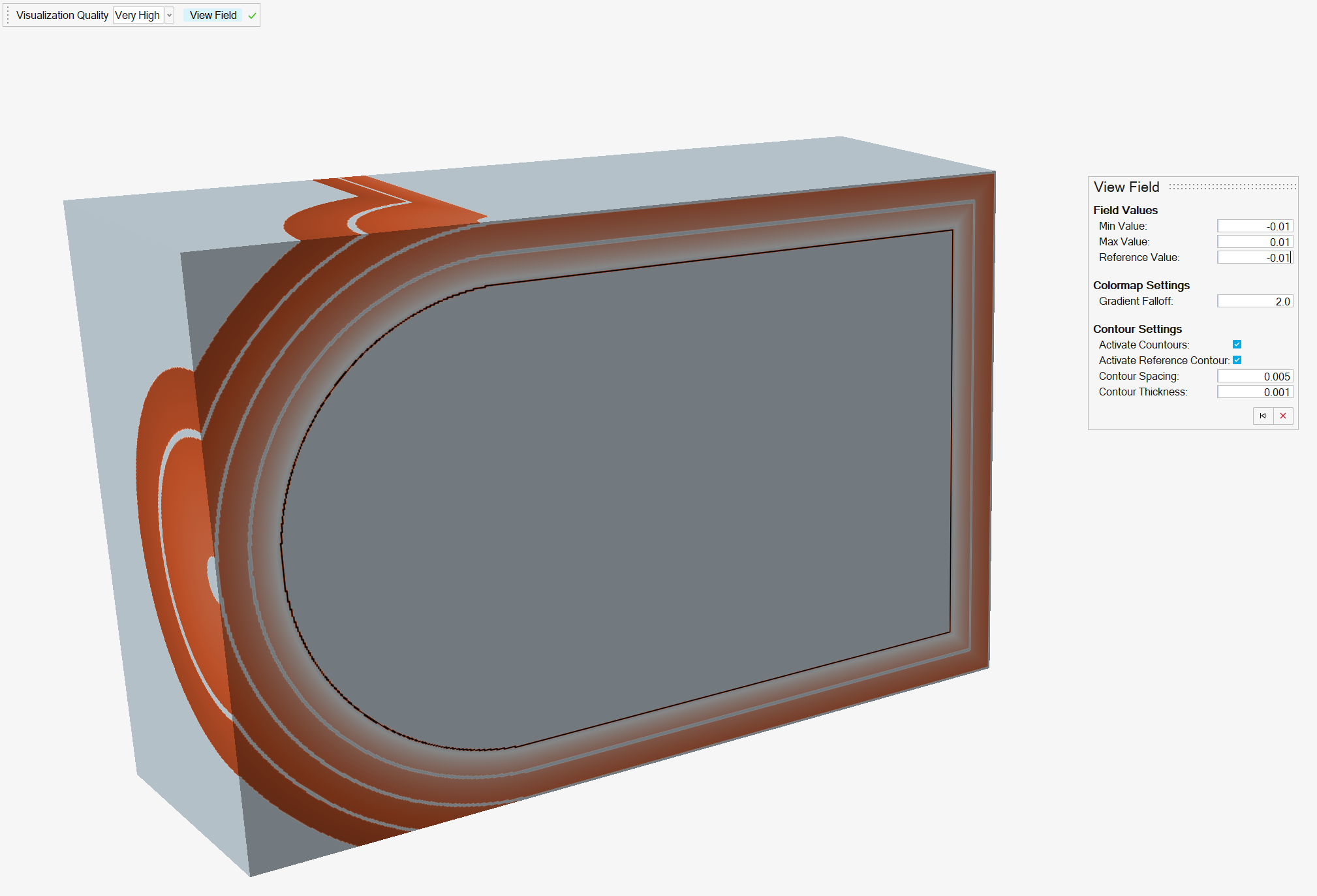 想象隐式主体的底层场并不总是那么容易,特别是在对该场执行了几种操作之后。查看场设置使用户能够使用轮廓和色图来可视化隐式对象的底层场。此工具与剖面一起使用时最有效,这样还可以查看物体的内部。