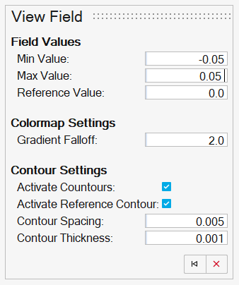 下一组设置位于轮廓设置标题下。黑色轮廓保留给用户指定的场中的参考值。白色轮廓表示以给定间距远离参考值的等高线。