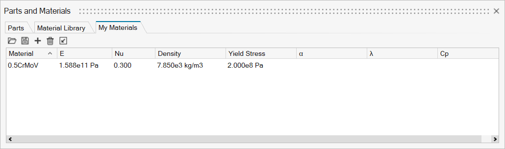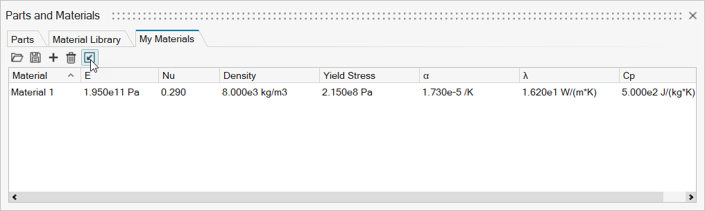 下载完成后,可在“零件和材料”操作面板中的“我的材料”选项卡上找到该材料。