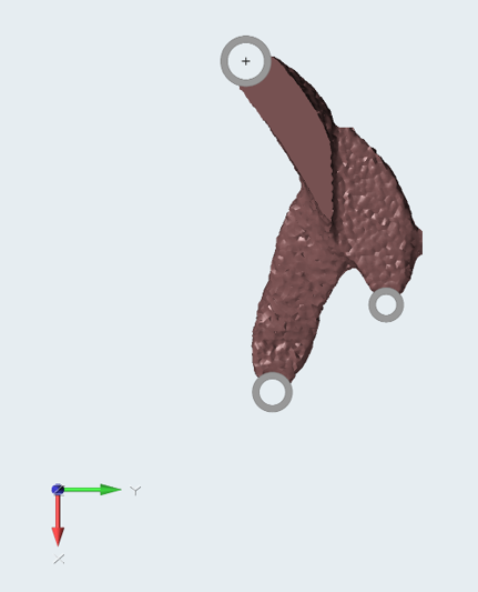 - 选择该边界框上的一个面,以便选择一个最接近打印基础的平面。蓝色锥形表示打印方向。