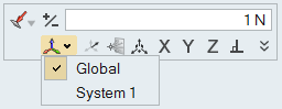 使用力、固定约束和位移对应的小对话框将本地坐标系应用至一个载荷。